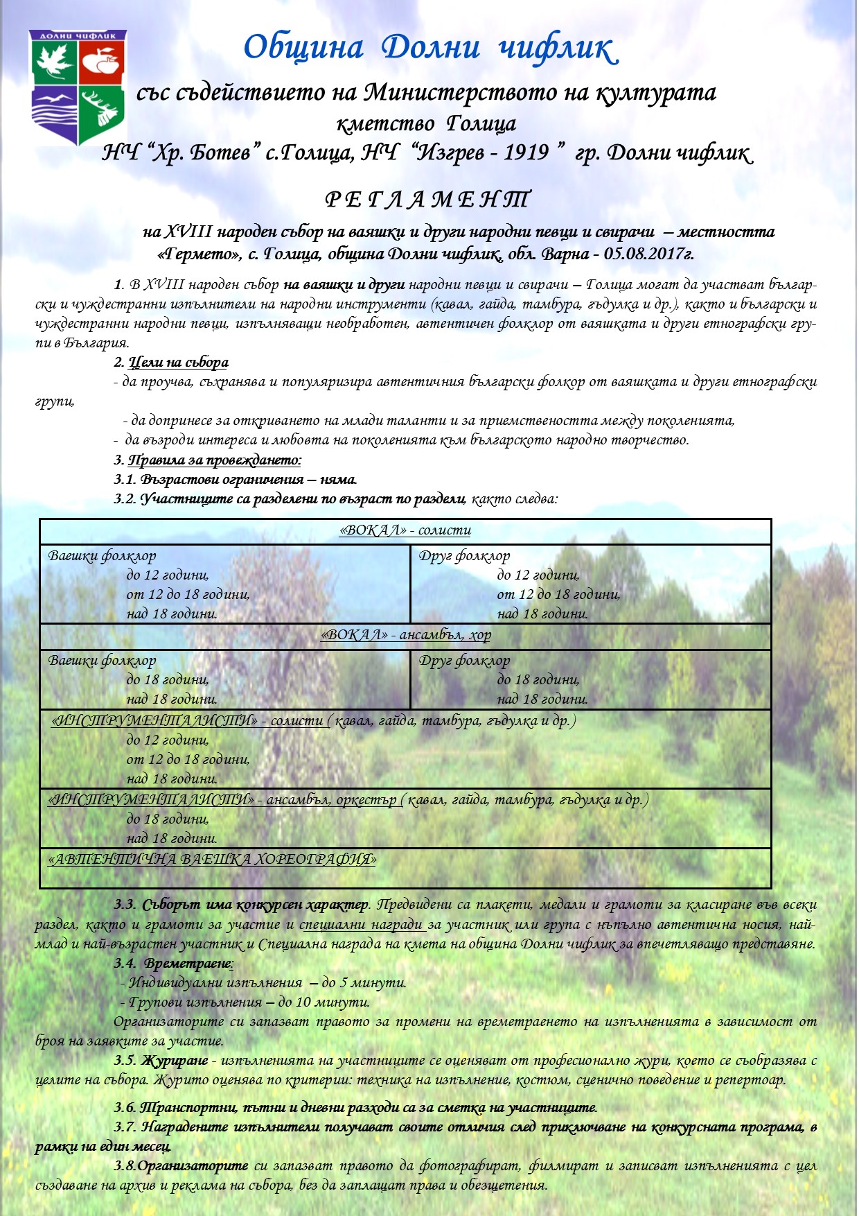 Обява за ХVІІІ народен събор за ваяшки и други народни певци и свирачи "Гермето" 2017 г.Регламент на ХVІІІ народен събор "Гермето" 2017 г.Заявка за участие на ХVІІІ народен събор "Гермето" 2017 г.
